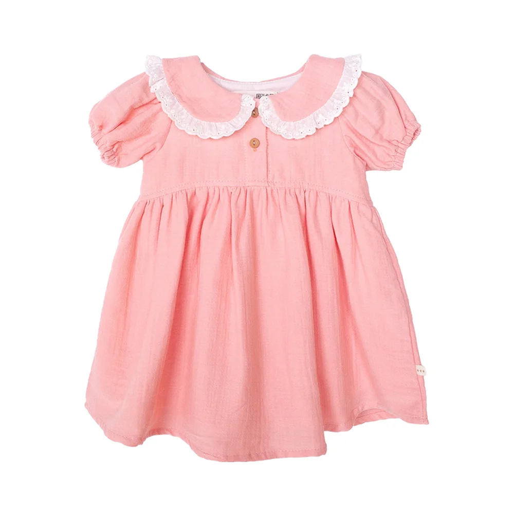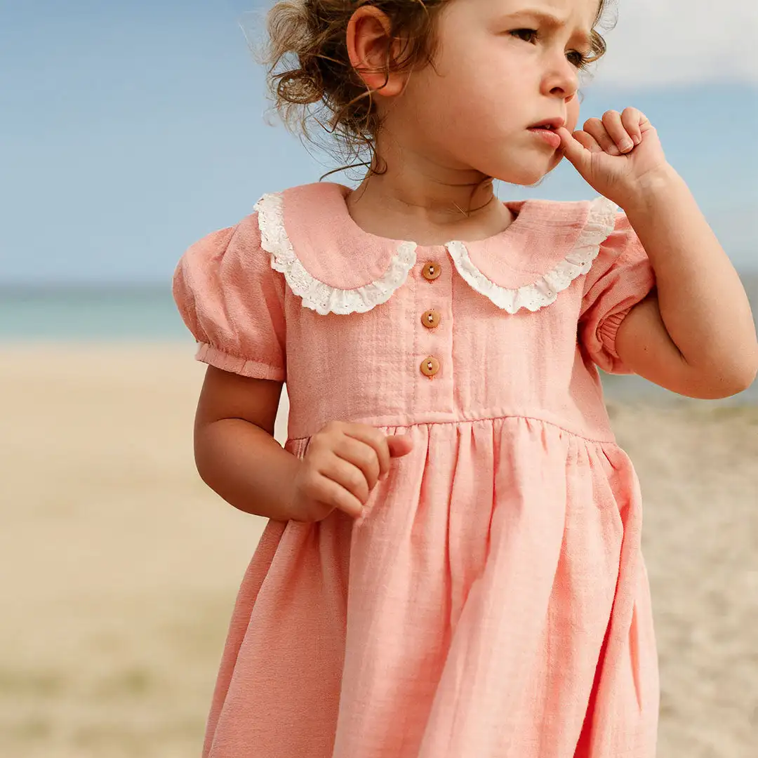 Wholesale 2026 Summer Floral Vintage Short Sleeve Dresses for Girls Teens Toddler Kid Peter Pan Collar Lace Drop Shipping